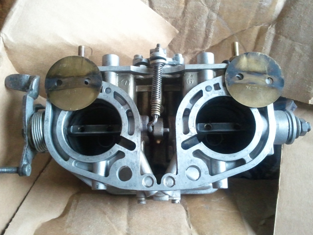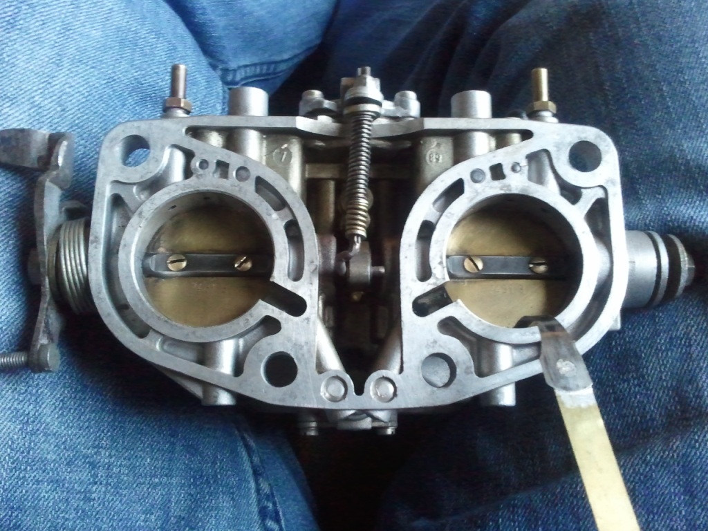 Since the problem couldn't be corrected with the air balance bypass screws, I removed the carb to bench reset the butterfly valves. I removed, cleaned and the swapped their bores: