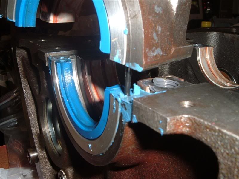 Rear seal adapter. Unfortunately, my brain wasn't working correctly and I stretched out the seal O-ring when removing the cap. Chalk that up as a big "Damn." Oh well, everything else is looking amazingly clean and rust free for having been stored for a year now. Tomorrow I remove the cam, and test fit the piston rings to verify I'm not going to go over end gap tolerance by boring it out another .002" to 4.007".
