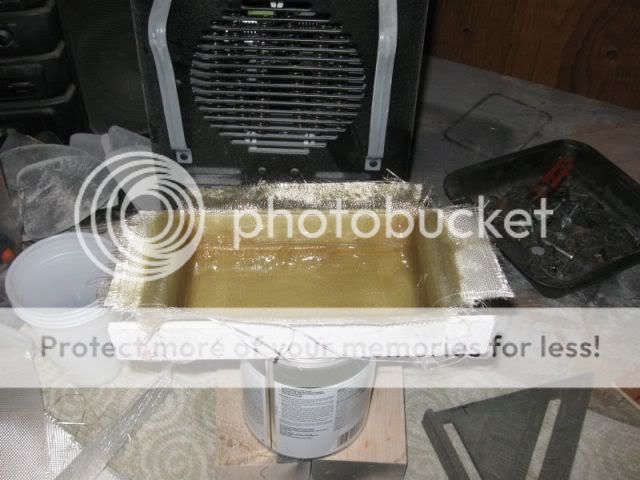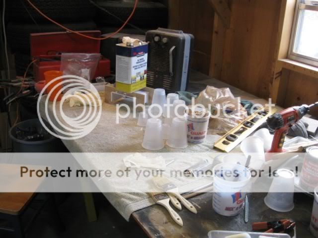 This was going to be my largest fiberglass project yet. I cut all the mat and cloth, layed out all my supplies and went to work: