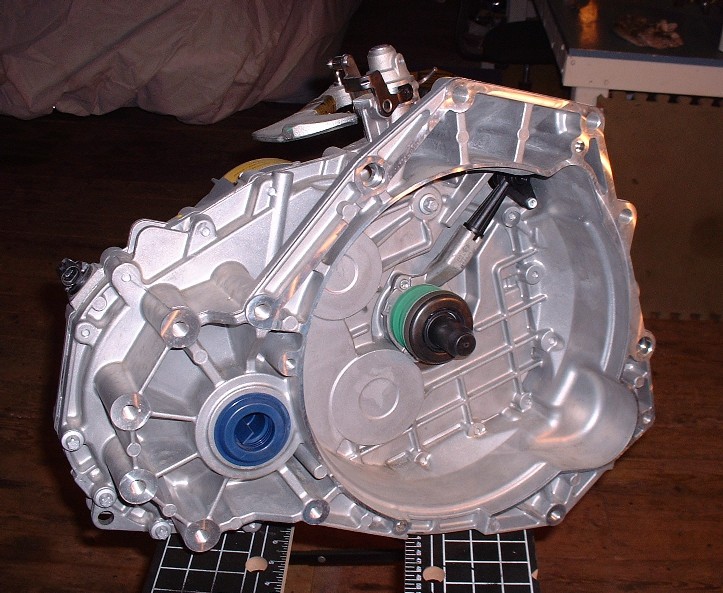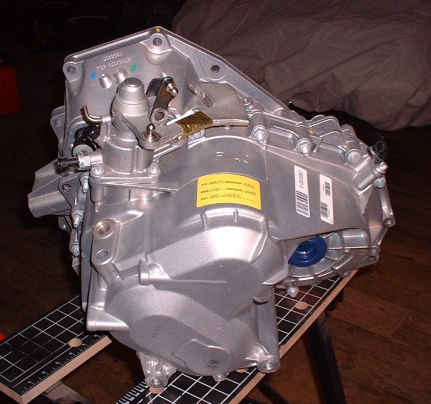 And now… for the transmission. Most people reading this thread are well aware of the incredible deals that were to be had starting about a year ago on Pontiac G6 transmissions, but for those tuning in for the first time, here’s a brief summary. In 2006, Pontiac offered a new higher-powered version of the G6 sport sedan called the GTP. The GTP had a 240 horsepower 3.9 L V6 with variable valve timing which came standard with a four-speed automatic transmission, but for no cost, a six-speed manual transmission was available. The transmissions fabricated by GME in Germany are known as the F40 (RPO code MT2) and came with the following gear ratios: 3.77 / 2.04 / 1.32 / 0.95 / 0.76 / 0.62 / Rev 3.54 with an axle ratio of 3.55 which gave a final drive raito (in top gear) of 2.51:1. The torque capacity was officially rated at 295 lbft.