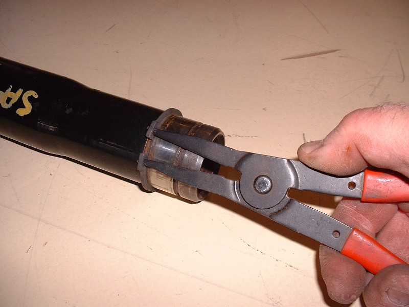 To make sure I got the bearing at the right depth on the axle, I installed the inboard snap ring, and then pressed the bearing and preliminary jig into place.