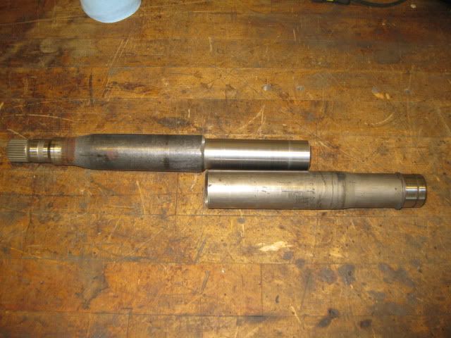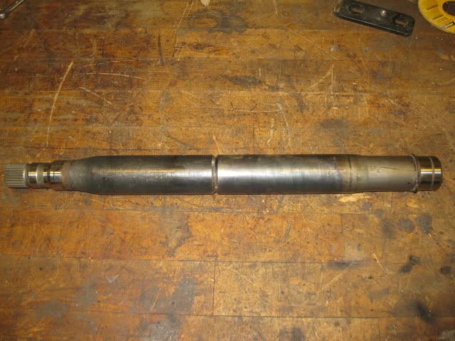 My 12 ton home made press didn't have enough push to slide the two ends of the intermediate shaft together, so I took it to work and got it done. There is about 4 1/2" of overlap on each side. I would have it welded already, but ran the welder out of wire... :