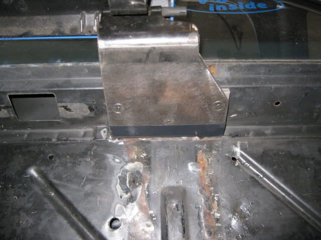Started the work on the engine bay today. Welded in the relocated panel on the DS frame rail, removed the last remnants of the decklid hinge boxes and pulled the 6 1/2' x 4' sheet of 1/8" steel out to cut a 30" x 48" piece (easier to handle for future small pieces vs. always pulling out the large sheet) and from that piece I cut a 6" x 36" piece that I will bend into an somewhat open "L" for attaching to the firewall and rear glass tube.