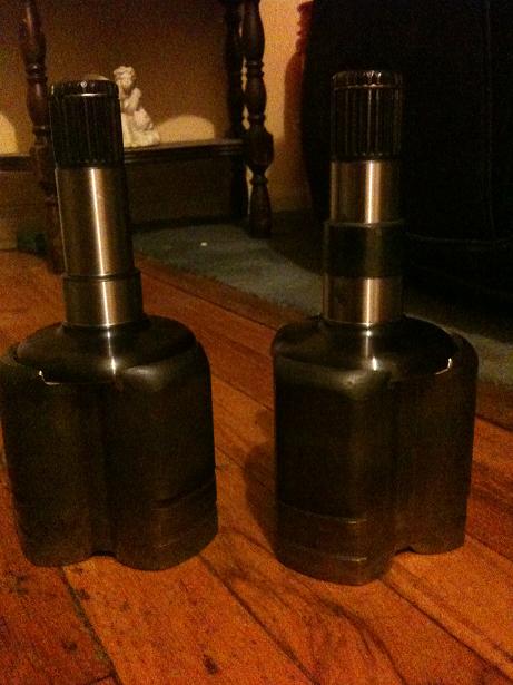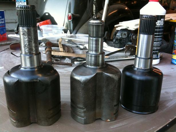 So it is an EMPI aftermarket axle for a Chevy Equinox that was the donor for the stub shaft, and I machined a stock manual Fiero cup to press onto it, then welded it in place. On the one, I had to add a sleeve to extend the sealing surface to mate with the seal.