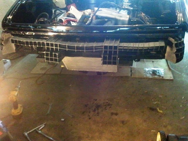 Started by mounting stock air dam and reinforcement brace to bumper cover: