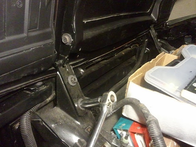 For the front compartment lid, I placed in position vertically on a towel since I was installing it by myself. Then I could finger tighten the lid bolts and lower it down with the headlight doors open for access.