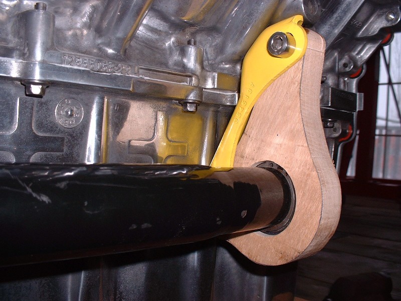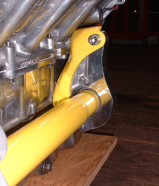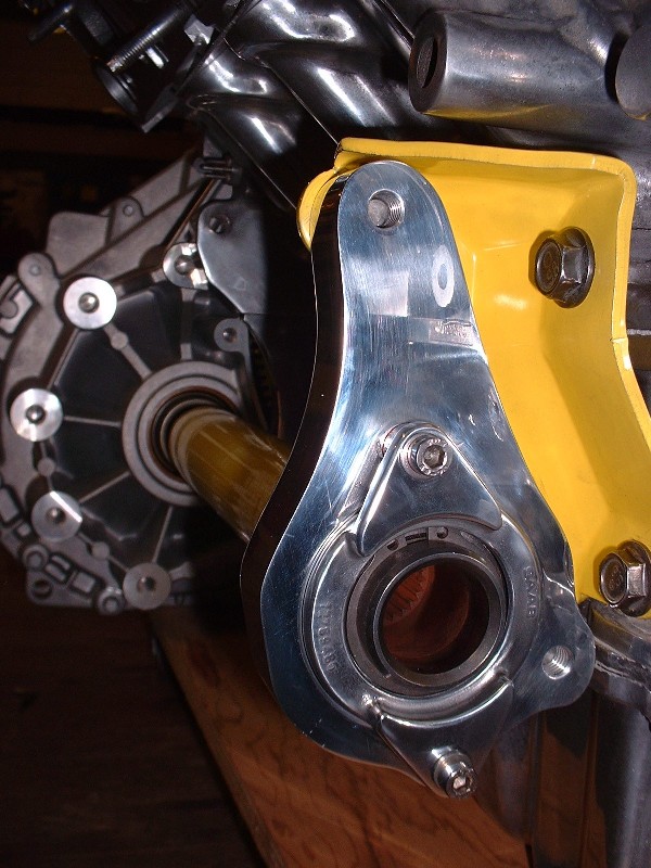 Initially, I found that the axle didn’t turn very freely, so I removed it and elongated the holes in the yellow bracket by about 1/8” closer towards the engine and tried it again. After a bit of adjustment up and down and sideways, I managed to find the sweet spot and tightened it up. In this shot, you can see why the through-hole in the back of the housing needs to be a certain diameter. It has to be large enough to insert a pair of snap ring pliers to remove the ring if necessary.
