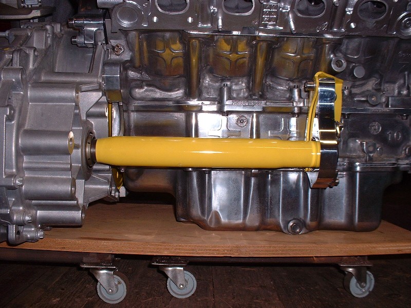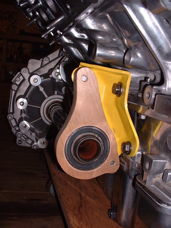 With done, all that was left was to install the assembly into the transmission and bolt it up to the old Caddy transmission snout bracket.