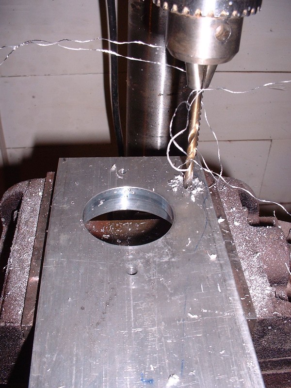 It was nice that there were some finely finished square edges on the block since that made locating the mounting holes a piece of cake. I double and triple-checked my measurements and decided it was time to make some aluminum shavings of my own. If you decide to make something like this yourself, make sure you use a drill press otherwise you’ll surely end up with holes that aren’t parallel.