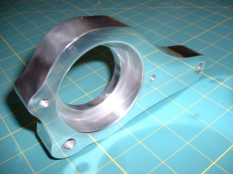 Back on track here… 6061 aluminum is amazing to polish, as I recently found out. I spent about two hours with some 220 grit followed up with some 320 grit and then hit the polisher with the bearing housing. I think I accidentally stumbled on Romulan cloaking technology! Check it out: