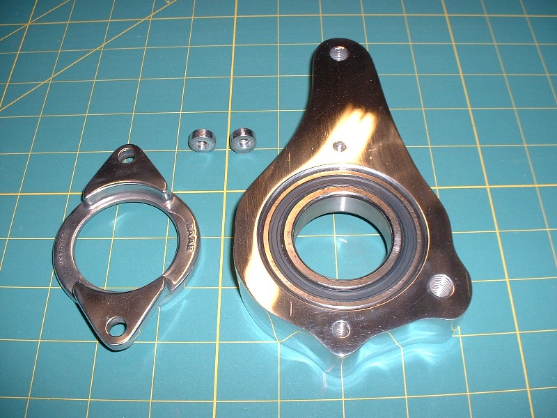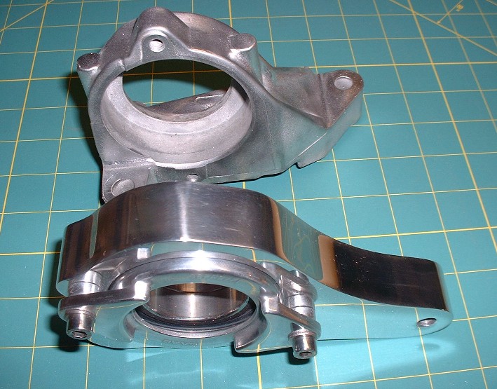 Here’s the old Saturn Ion bearing housing and my new one, side by side for comparison. I’m glad I didn’t bother trying to polish all the nooks and crannies on the Ion mount, I’d probably still be at it! It’s probably only made of white metal anyways and would have corroded within a couple months.
