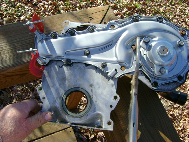 The vice grip holder is holding the water pump against the timing cover until the sealer dries[This message has been edited by josef644 (edited 01-12-2010).]