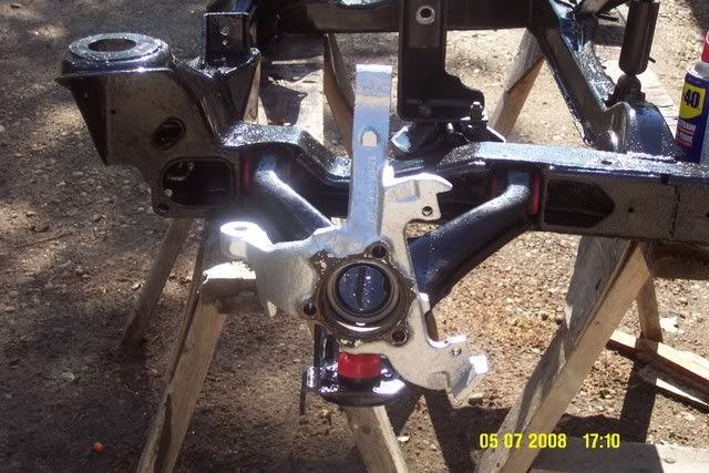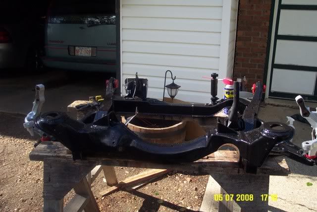 Poly bushings are installed in the front of the cradle and in the rear control arms. New engine and transmission mounts have been bolted to the cradle: