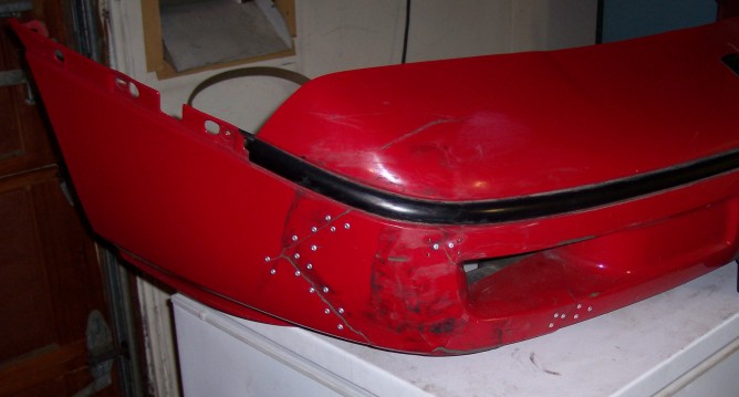 Here is the front fascia. Why the guy used rivets is still a bit of a puzzle. There are easier ways but it held it together I guess. Despite the carnage, this fascia is still savable. I might work on it in my spare time. But I am working on a trade for another one if I can find a decent red fascia.[This message has been edited by Toddster (edited 11-13-2020).]