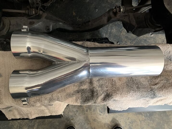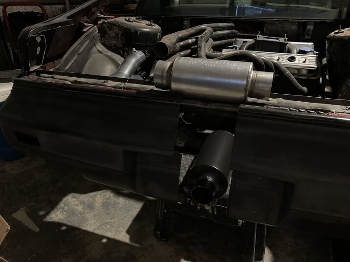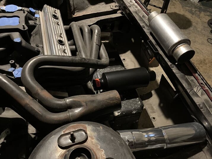 Slow progress right now as there was a delay getting the mufflers. There may already be a slight change of plans with the Y-pipe/Outlaw muffler combo. I may end up using the Y-pipe directly off the collectors instead of using two 90 degree mandrel bends. A single 90 degree mandrel bend routed towards the passenger side would follow after the Y going to the Outlaw muffler. This would simplify, shorten and lighten the system even more, not to mention be much easier to route overall.
