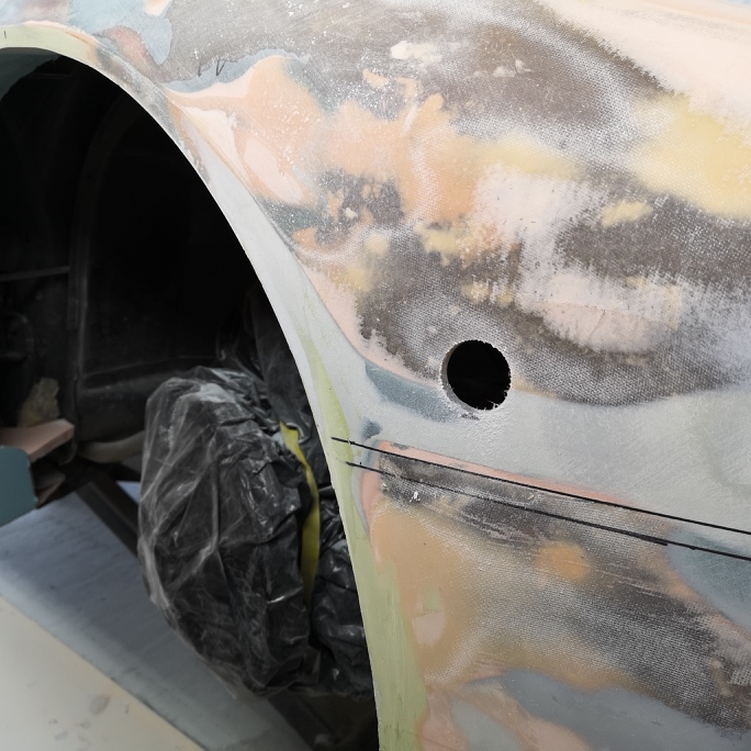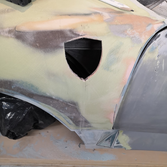 For those following the build it’s been a lot of Block sanding !!!! To 120 grit. Since the last Post I Ended up adding some end caps to the fender and center fill , I found there was to much flex between the pieces making it difficult to block sand . The parts now are attached with riv nuts and 10-32 bolts very solid now. Don O. Also felt I needed to narrow the gap along the roof where the rear sail plane attaches. I’m hoping to spray it again this weekend with thinned slick sand in preparation for the final sand to 600 before painting. I’ll post some pics later.