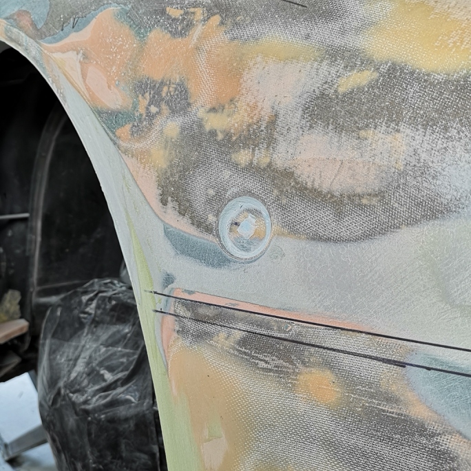 I finished up the fender shield mounting recessed areas, I'm happy with the way they came out. I tested one of the shields for fit ,fits like a glove.