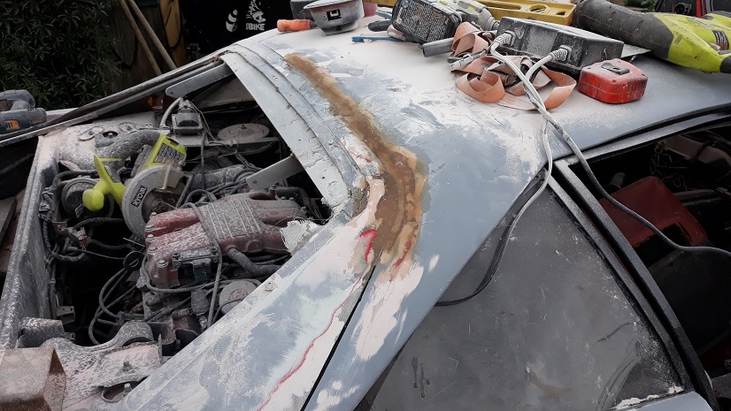 Thank you engine man I love reading your motor threads! Got a whole messerschmidt done yesterday n today Sand fill booger, repeat Started out yesterday w sanding n painting the door window frames cuz theyre starting to surface rust. Played w the gas filler, need to make a custom pipe from the cap housing to the fill hose. Car ran outta gas today when I went to move it. Batterys totally toast from sitting. had to join the trunk n roof again, gap was too big
