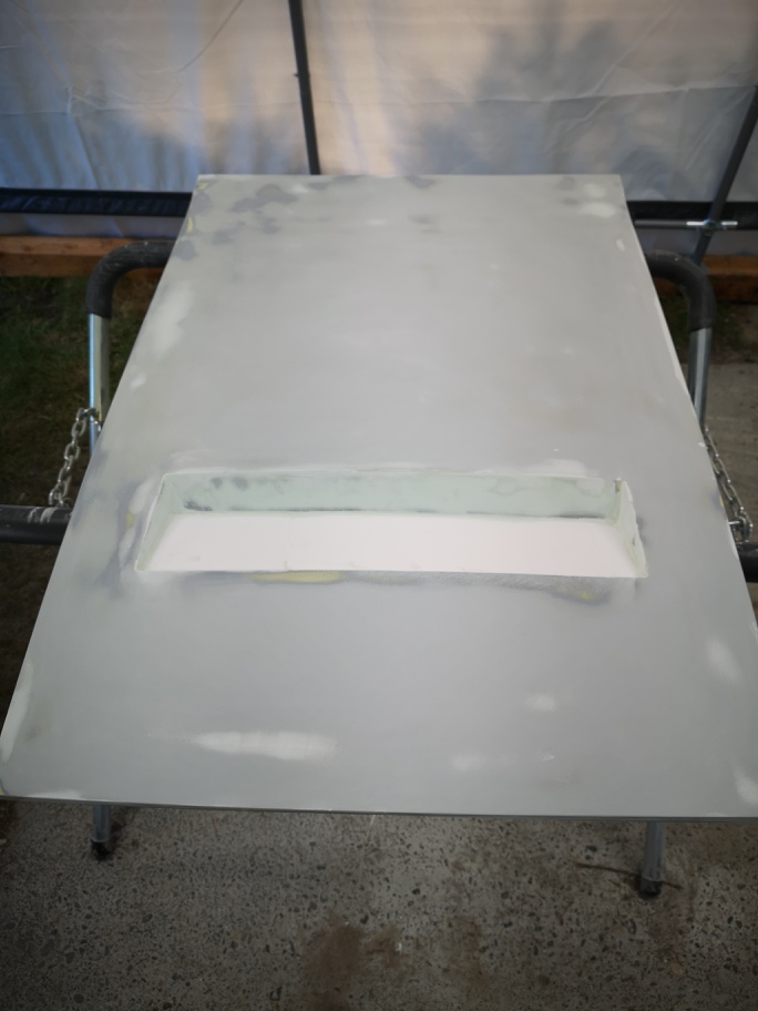 Have you decided on what paint/final finish you'll be using, keeping in mind, it will be the surface your molds are made on? Just curious, As I'm sure you're aware, the molding process does really "test" the integrity of the surface used to create the pulling surface of the molds formed on it.