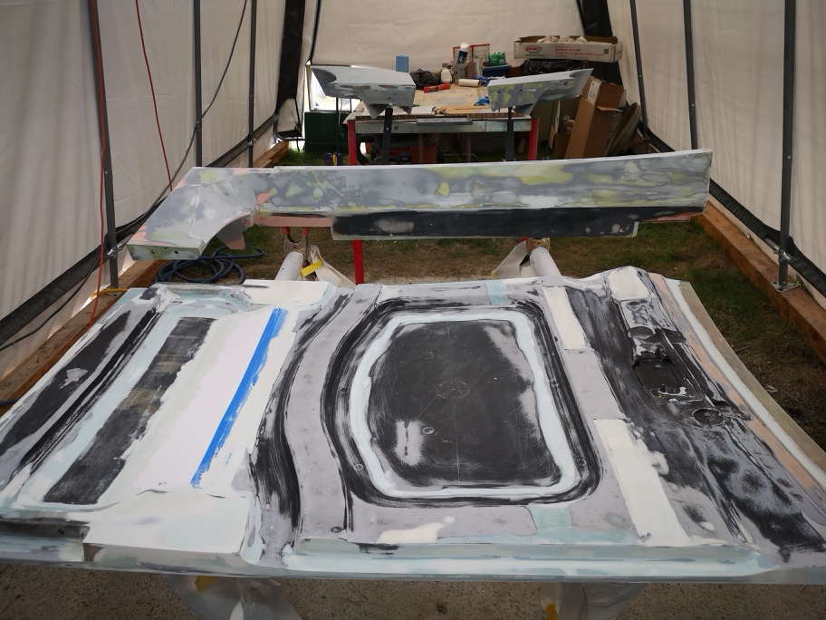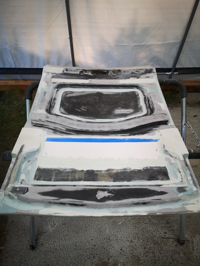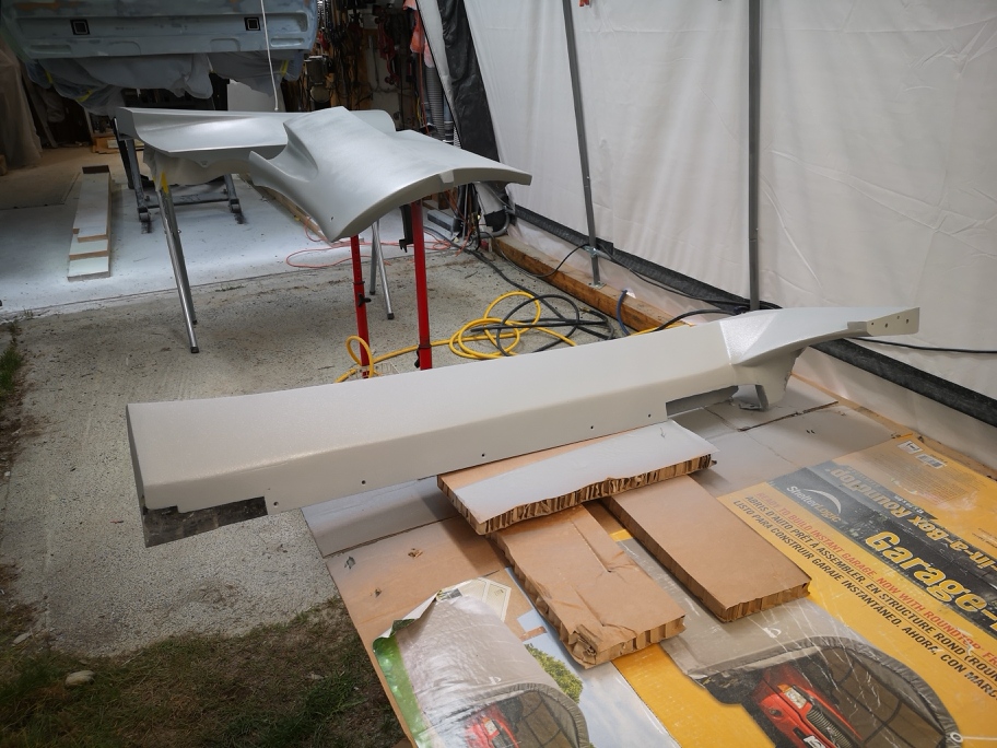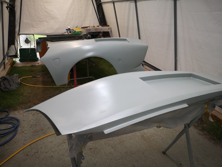 A bit of a update. The weather isn't really cooperating ,it's really cool and moist from the rain. The parts I primed the other day although chemically dry hadn't really dryed to a point I could sand yet. So switched it up and setup and Primed a few more pieces.