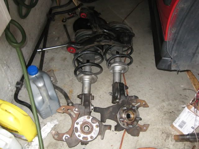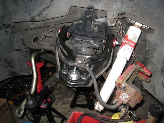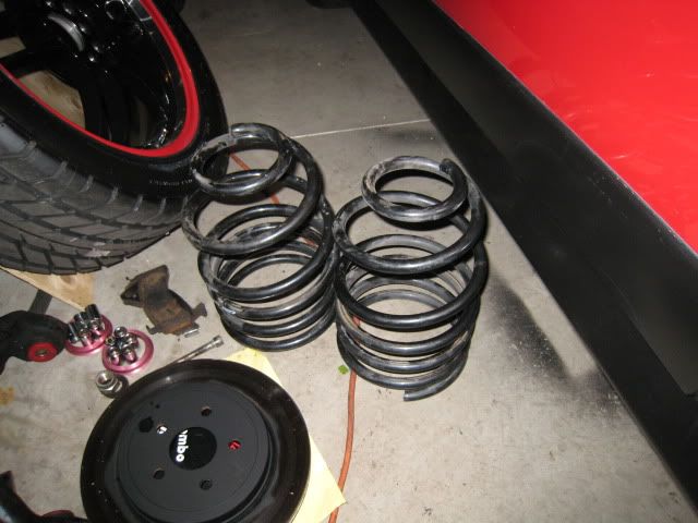Tomorrow maybe I'll paint the springs silver to match my rear coil over springs, as well as get the lower ball joints pressed in. Get the poly in the lower arms too and pick up the new hardware for the arms. I thought they would come in today, but no such luck. Until tomorrow...