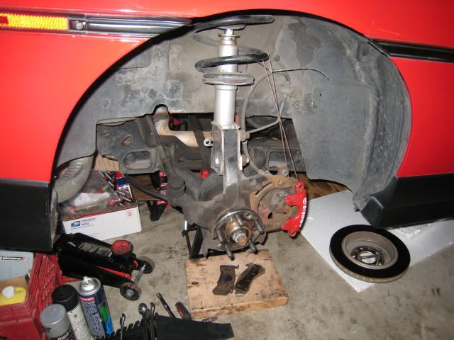 removed the rear inner/outer tie rods and replaced them got the springs seperated from the struts got the lower control arm off that was seized up. Replaced the lower ball joints, and got the new poly in. removed the A/C compressor and replaced it with the ZZP A/C delete pulley