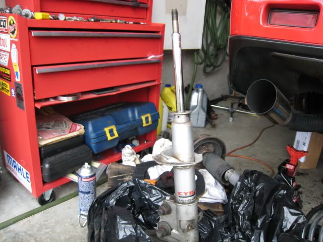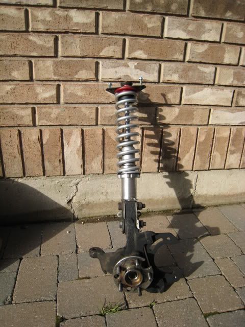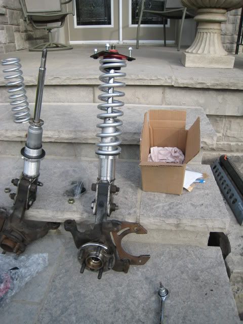 Also managed to put the coil overs together. I had to take them to the machine shop to get the sleeves bored out because they wouldn't fit over the strut body. But alas, they are together and ready to bolt back in the car.