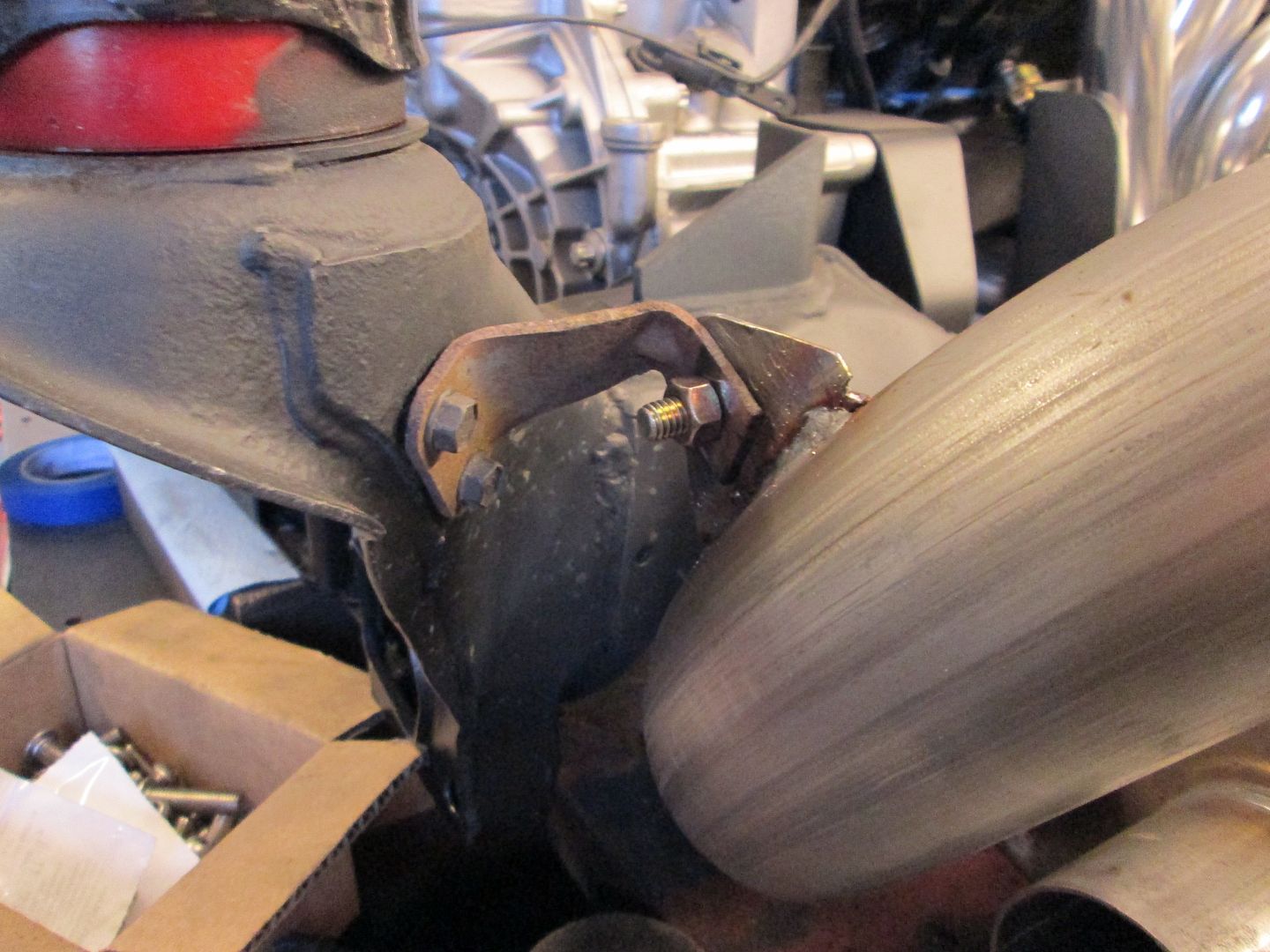 Here is the driver side hanger (I need to sand it down and paint the bolt on bracket):