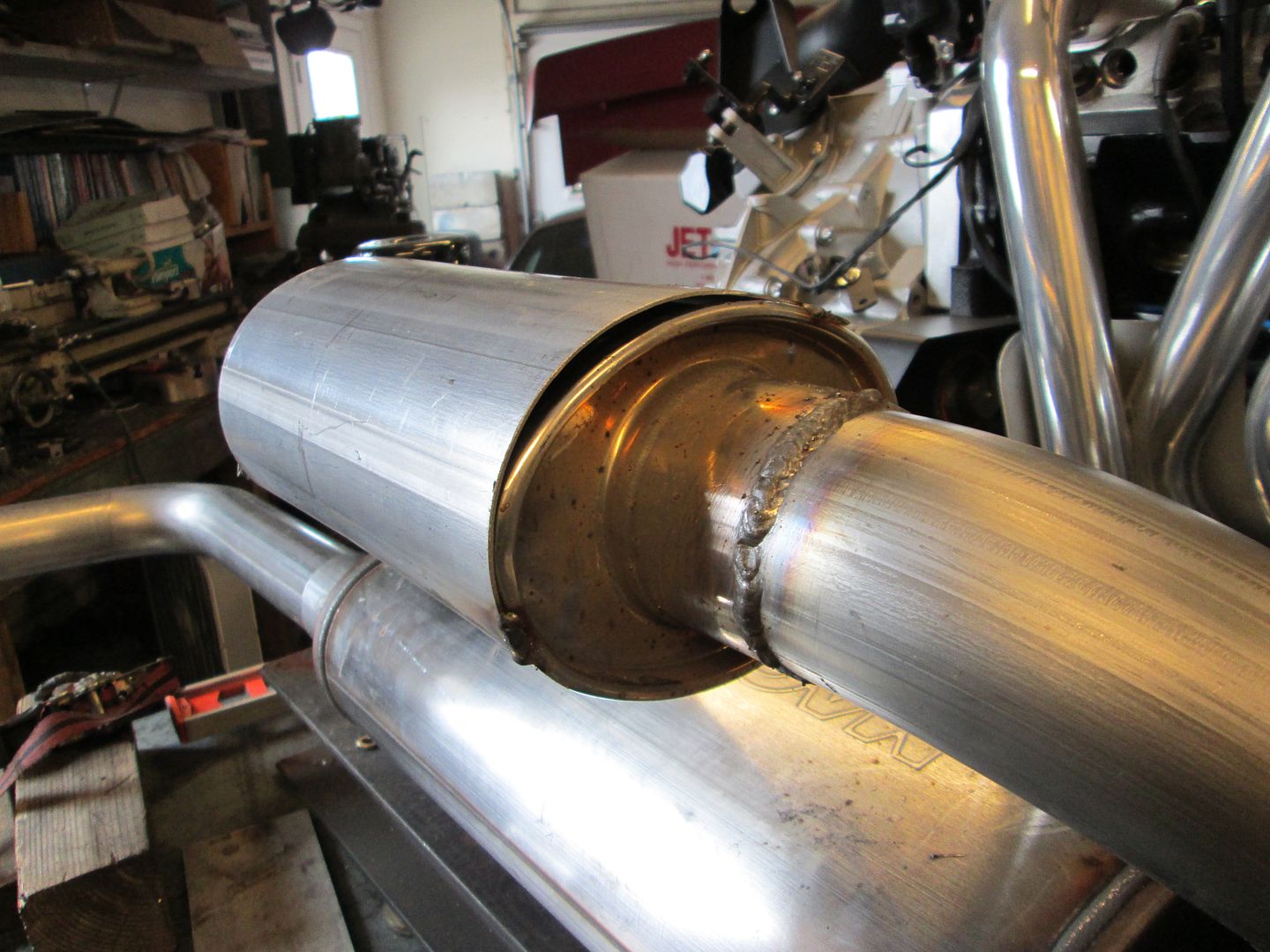 Here is the passenger side. It will have a hole drilled for a strap that will go down and be attached to the 2 1/2" exhaust pipe on the passenger side. I didn't take a good picture of it, but the wideband O2 sensor bung was also welded on: