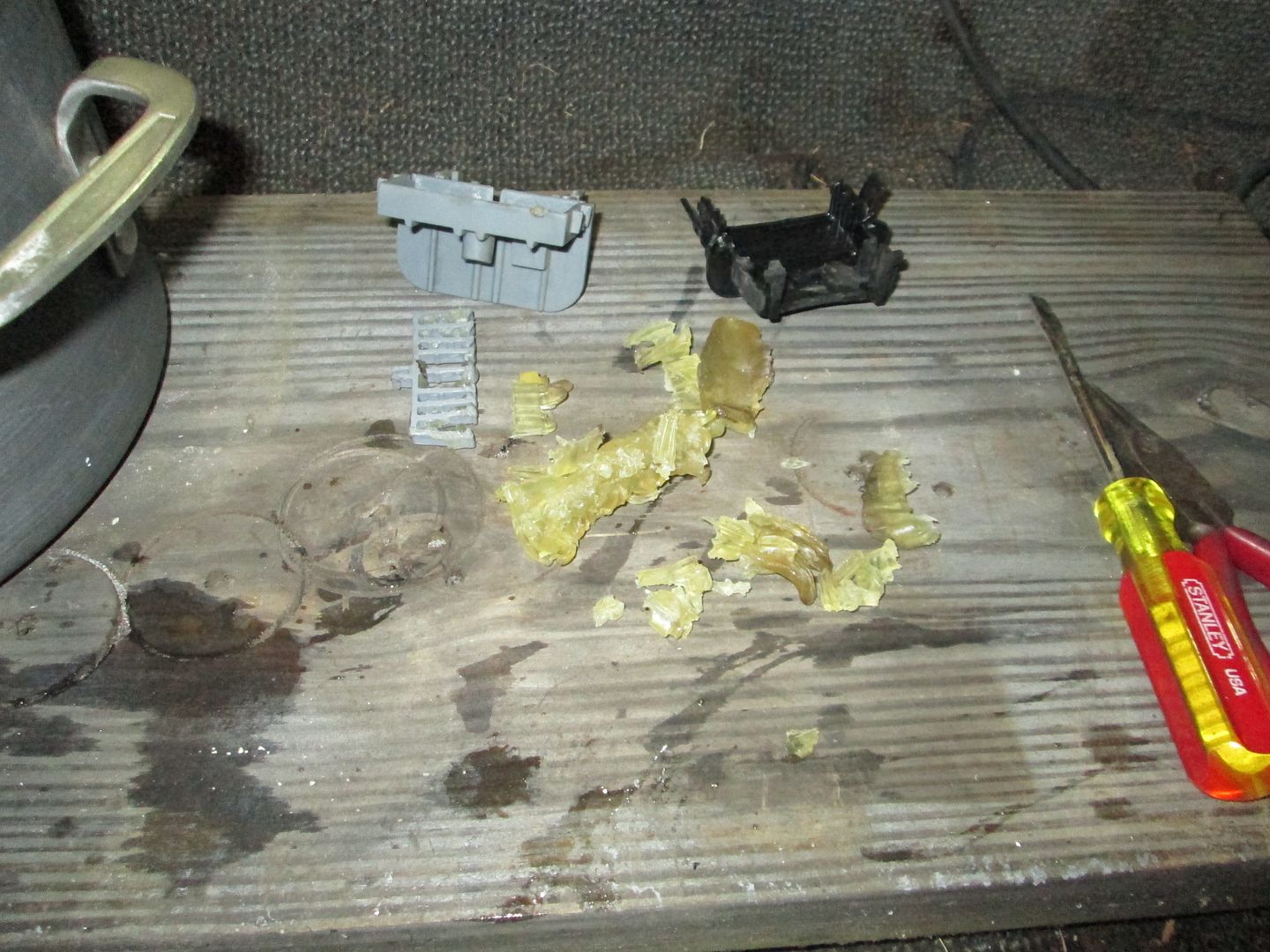 I need to steal the fuel pump connector off the parts car's fuel tank so I can replace the melted one. Once that is done, the fuel tank can be installed along with the fuel filter/regulator. Then the engine/transmission will go back in.