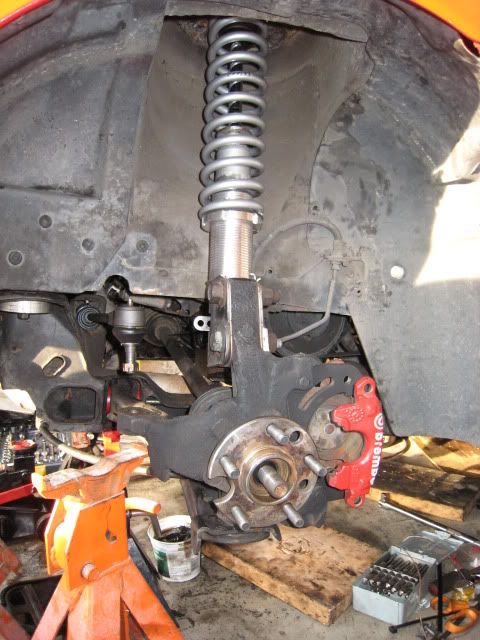 Today I got some of the suspension back together. The coil overs fit like a glove and should give me more room for wider tires down the road: