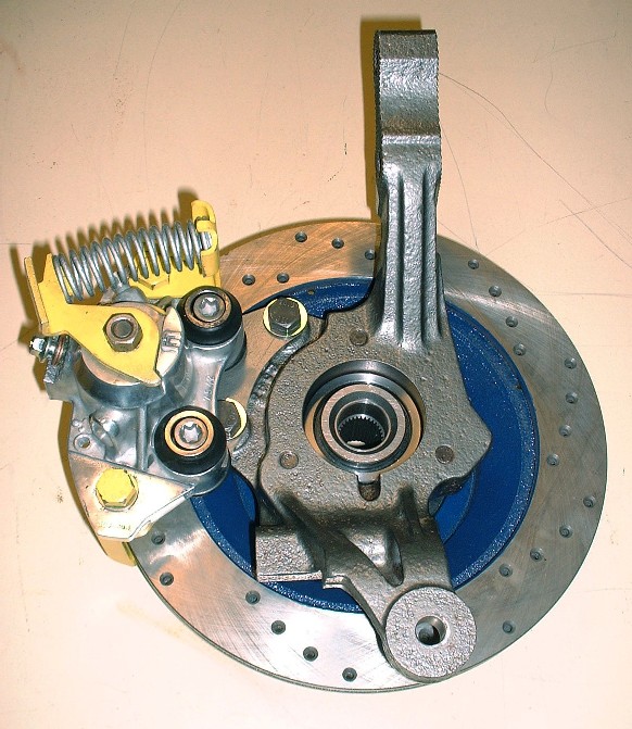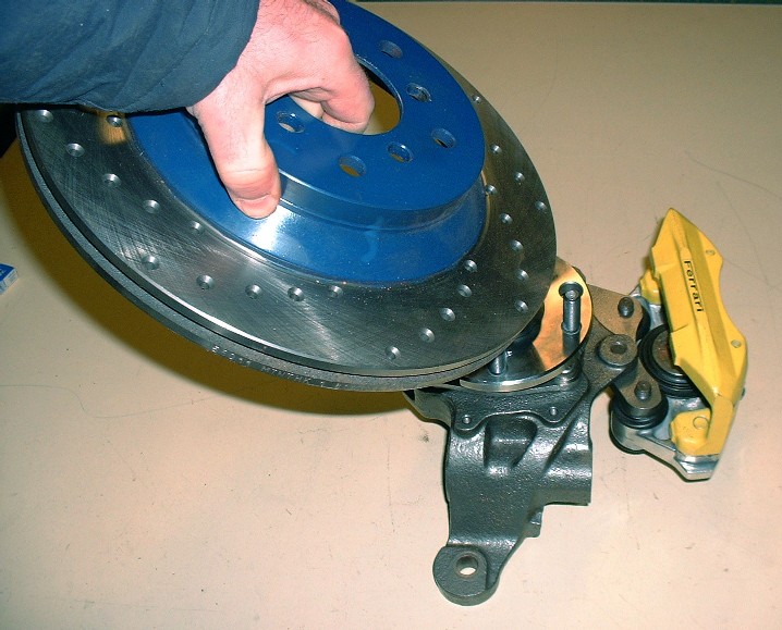 The last thing to do is slip the rotor on. I’ve found that it can be installed with the caliper already on the knuckle as long as the pads aren’t installed. You have to tip it at a bit of an angle though.
