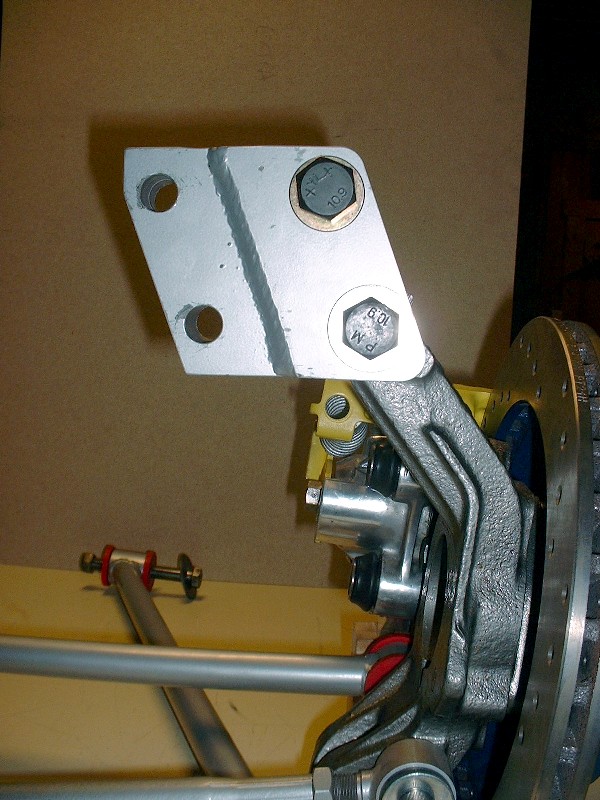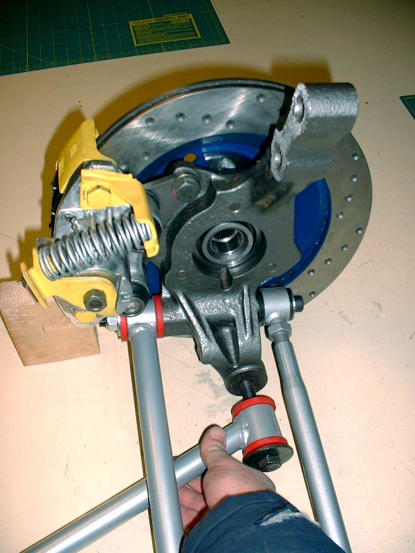Then slipped the forward adjustable lateral link onto the bolt, then the bolt through the knuckle, and the rear fixed lateral link on the other side.