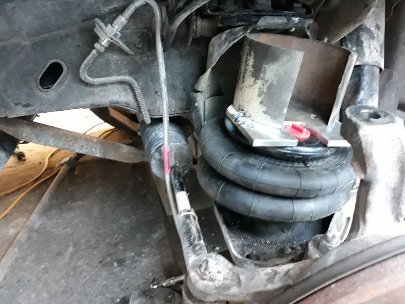 Going to order some straight fittings for the front bags. I have elbow fittings there now and its fine at normal and dropped height, but when the car lifts the upper control arm rubs the hose a wee bit. I can rout the hose straight up if I notch the perch. Back may not go down all the way, may hafta make some brackets to lower smore. Still playing with it. This airbag adventure is very fun and wasnt very difficult. Everything was pretty straightforward
