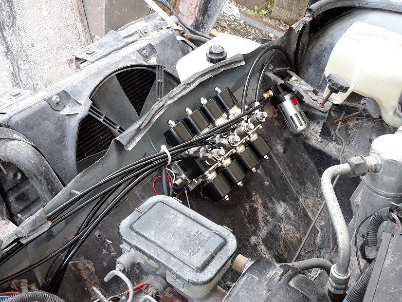 Been having some trouble with the mani, traced it to a bad check valve. Doesnt let air in or out. Will need a new one. Bypassed it and still had some trouble, seemed like some valves were leaking. Pulled the mani to bench test it. Got a few fittings at lowes this mornin to connect the mani to my pancake compressor. Found out I had the inlet and outlet switched (should work either way), directions on the website are backwards. May have some switched valve wires too incorrectly pinned in the harness