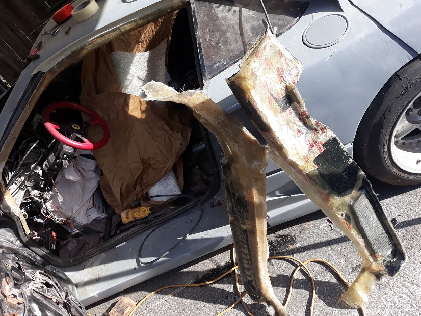Ive been cutting up the fiero trim pieces and keeping what I need, reshaping the rest w hvac tape. Got 2 layers of cloth and 1 layer mat n its super strong. These will make the door opening look much much better when finished, looks pretty ruff now. IOnce those r dunn, ill make the headliner (looking for visors n the center thingie they hook to), then insulation, dash, n seats will go quick. The door panels Ive been thinking about ways to do and looking at how much I hafta butcher the doors to make it work but it wont be too bad.