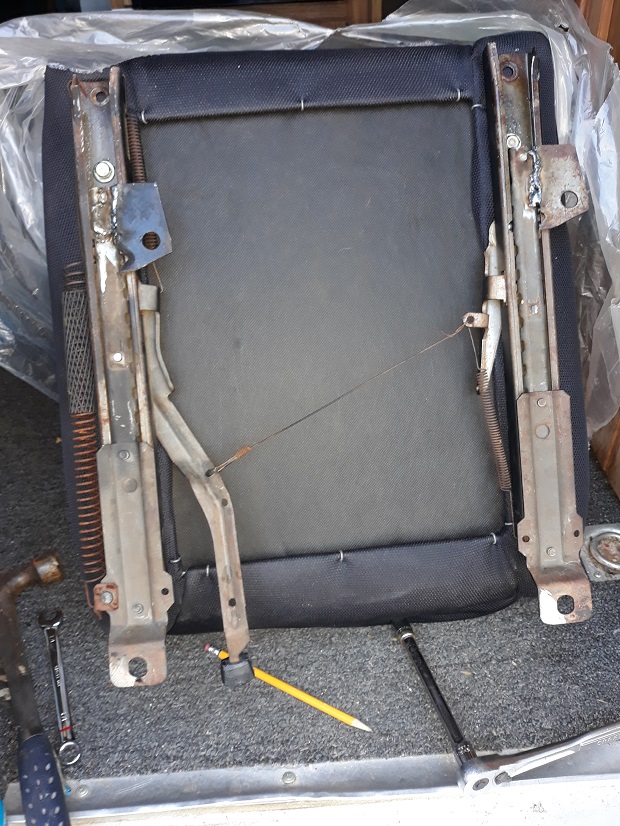 Busy busy crazy busy, just not on the car lol. Too many other things going on. ew roof on the toy hauler, painted the house inside, did a buncha work on the stang, redrilled the fiero 20" wheels to go on the benzo, repiping some stuff under the house, and work picked up with the temps. I did make a headliner out of luan and installed the ds seat. My head hits the ceiling a wee bit. I cut the rear supports off the rails n cut the ear off n welded it to the rail frame. Saved 1/2-5/8" havent tried it yet. The headliner sits too low because of the roll bar. If the seat rail mod doesnt get me low enuf, I can cut the headliner before it goes under the roll bar and move the main section up a bit. Heres the boogered ps seat