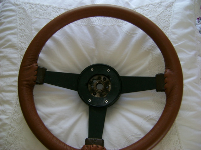 I added my 'WheelSkin' to the steering wheel today. Came out looking real nice. Has a real soft feel to it: