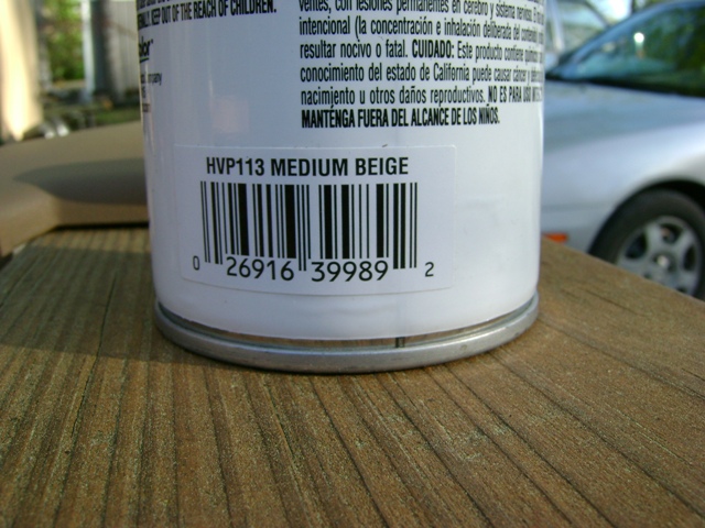 In the image you can see the old broken cover beside the can. The left end has the spray on it . It appears to be the same exact color as the original was. The rear label on the can: