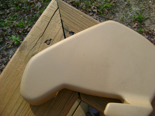 Just a tip for everybody. I purchased two seat mechanism covers from The Fiero Store. They were the defects that needed drilling and spraying tan from the gray, to match my tan interior. I purchased this product at AutoZone:
