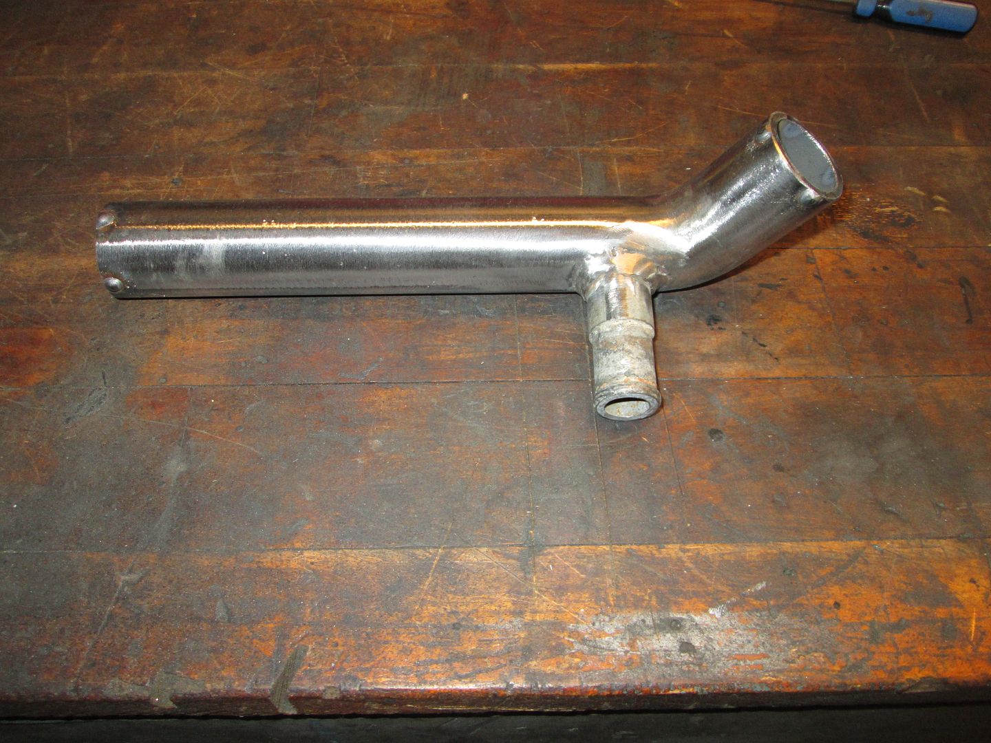 Made this coolant pipe that goes between the passenger side coolant tube and the water pump. It has a nipple for the heater hose to dump into the line before the water pump: