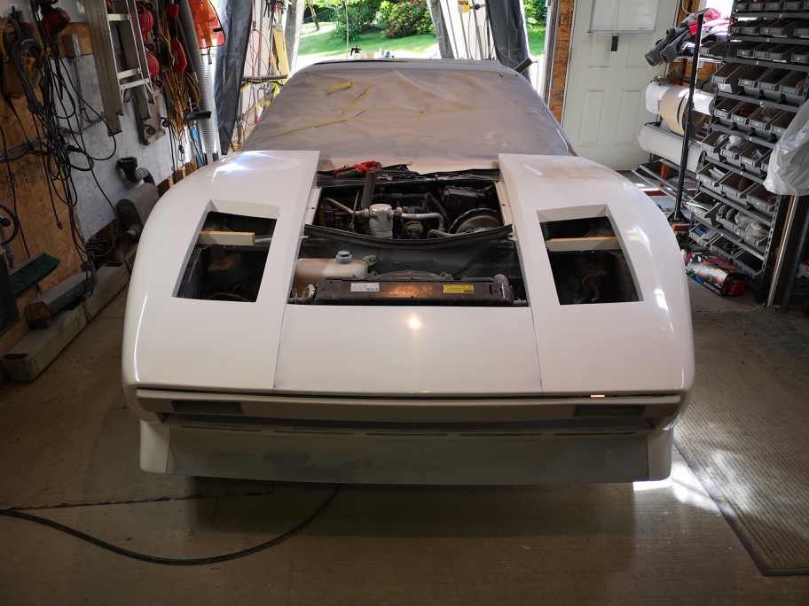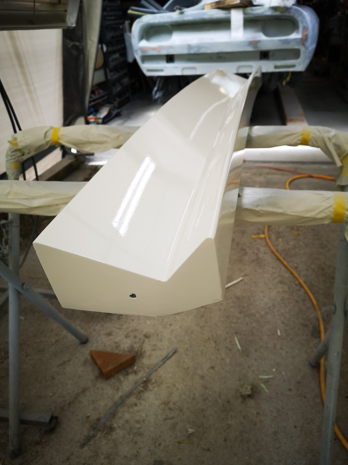 Tomorrow I'll block sand and hope to spray it with the white paint in a couple days. It's tough right now trying to find all the nuts bolts etc. that have now disappeared some where in the shop. Dam!!
