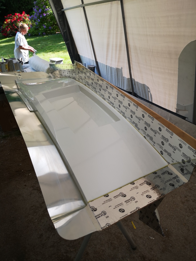 Retirement has it’s good and bad side to it lots of time to work on the project but the down side is a definite reduction in funds to work with. I can’t believe how much resin these molds take , the 2oz mat is taking 40 oz of resin per layer 1 oz 32oz . If I had known How much it takes I’d should have got a 45 gal drum ...... Wayne[This message has been edited by dobie1 (edited 06-02-2020).]
