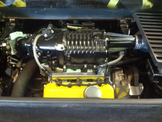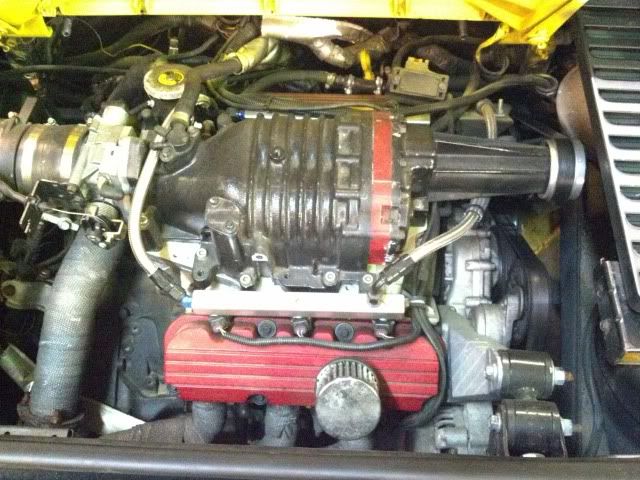 We upgraded to a gen 5 blower, 77mm throttle body, (it has the XP hot cam), full size intercooler and everything that looked out of place, will be getting refreshing. We also upgraded the transmission and engine mount brackets to Rodney's thicker ones. We have bent the stock ones with the torque produced from a similiar setup.