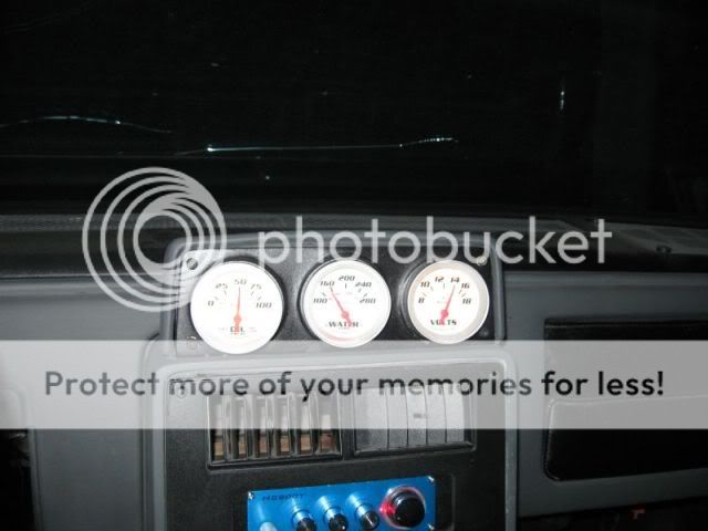 These gauges I installed have 4 different color settings. I like them normal white but the center one (you can't see it in this pic) was switched to blue. Now I have to take the pod apart so I can switch it back to normal: