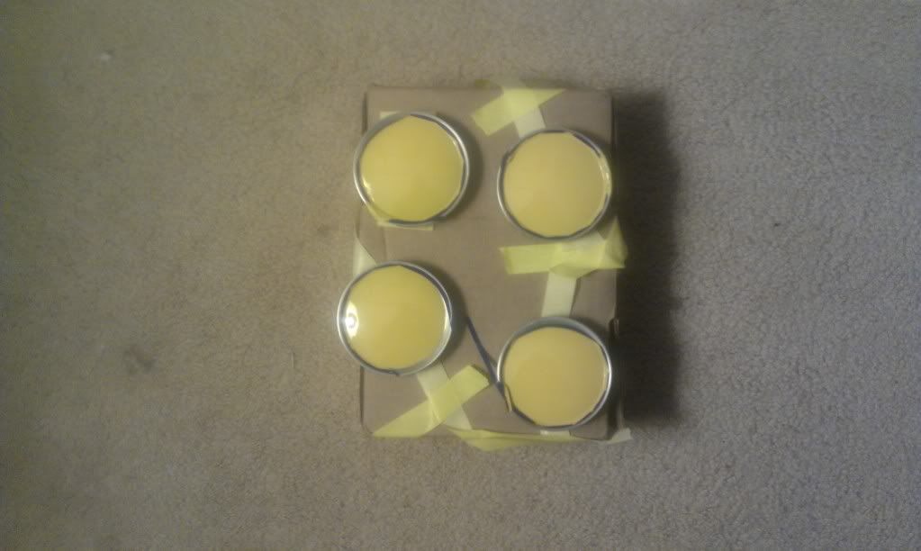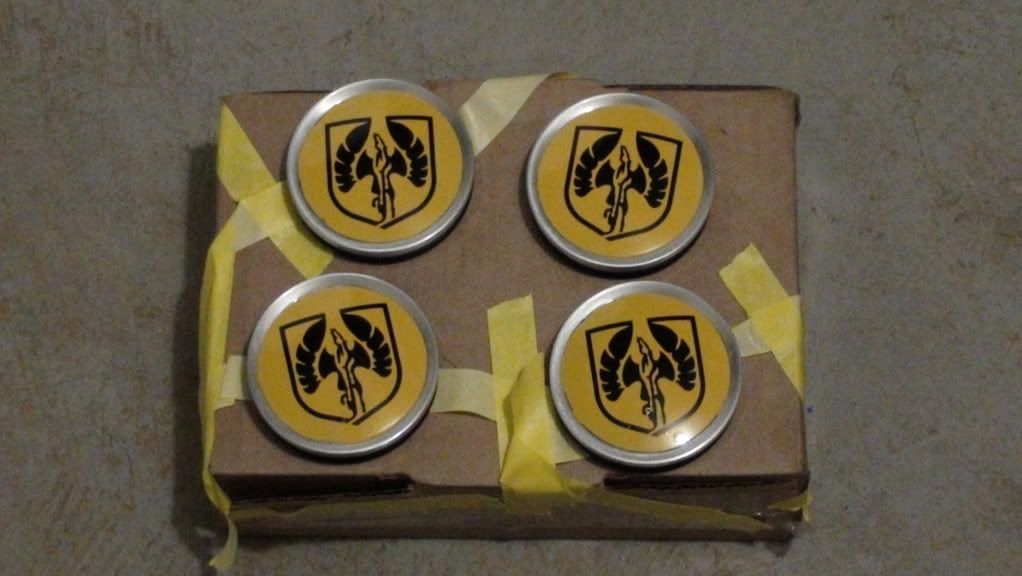 I picked up the centercaps for my wheels from the paint shop yesterday. They were painted to match my car. I decided to put the decals on now.
