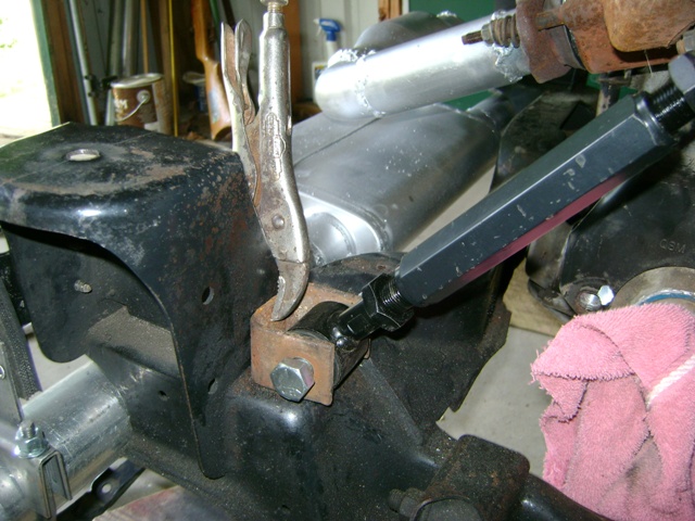 I found one more thing I needed to do before I remount the cradle. I had forgotten to get the mounting bracket for the torque rod welded while my welder friend was here a few days ago. He is coming back tomorrow afternoon to weld this on the cradle: