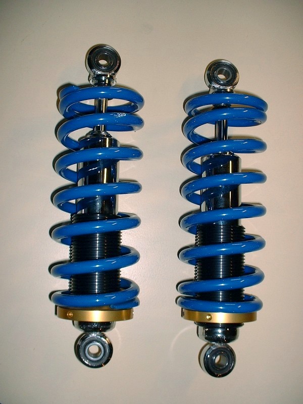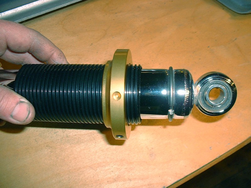 Once they were finally on, I could finish building up the coil-overs… which was just a matter of slipping the threaded tubes on and then the springs. This was one of those jobs you'd schedule 5 minutes to do and spend one hour. See what I meant by how little the chrome body of the shock shows? At least I’ll know they’re there.