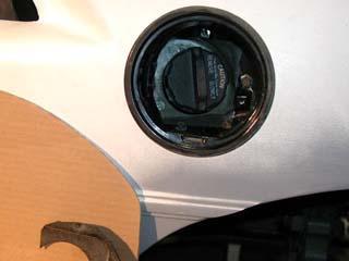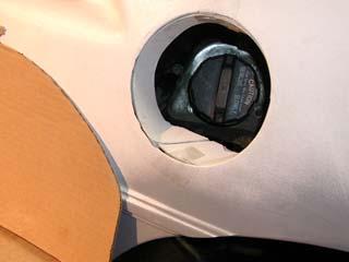 | quote | Originally posted by Russ544: The areas originally used to secure the fuel cup to the fender are now out of reach, so I plan to bond my modified fuel cup, which retains areas used to support the cover latch and hinge mechanisms, to the fiberglass fender with the same 3M body panel adhesive used to attach the substructure to the rear clip fiberglass. Now when the filler door gets reinstalled everything will function the same as the stock unit, compleat with interior door release.