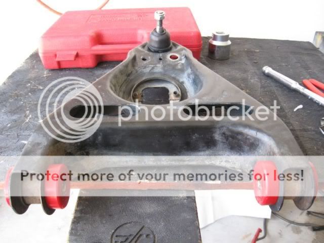 Got all the bushings out of the A Arms last night - started drilling them out but broke 3 bits and a knuckle or two so I resorted to burning them out. What a freakin PITA and mess. Took longer to clean up the mess then it did to get em out. Also knocked out the lower ball joints.